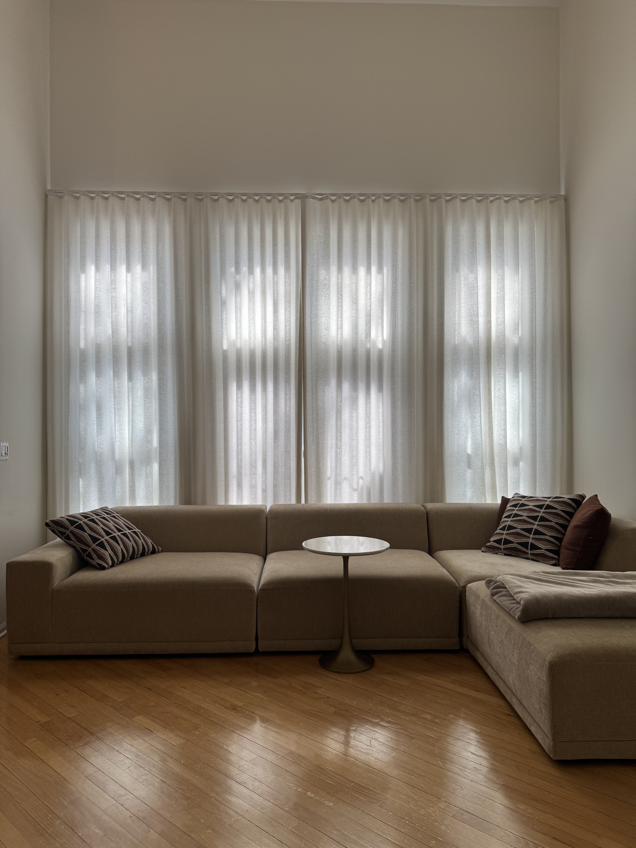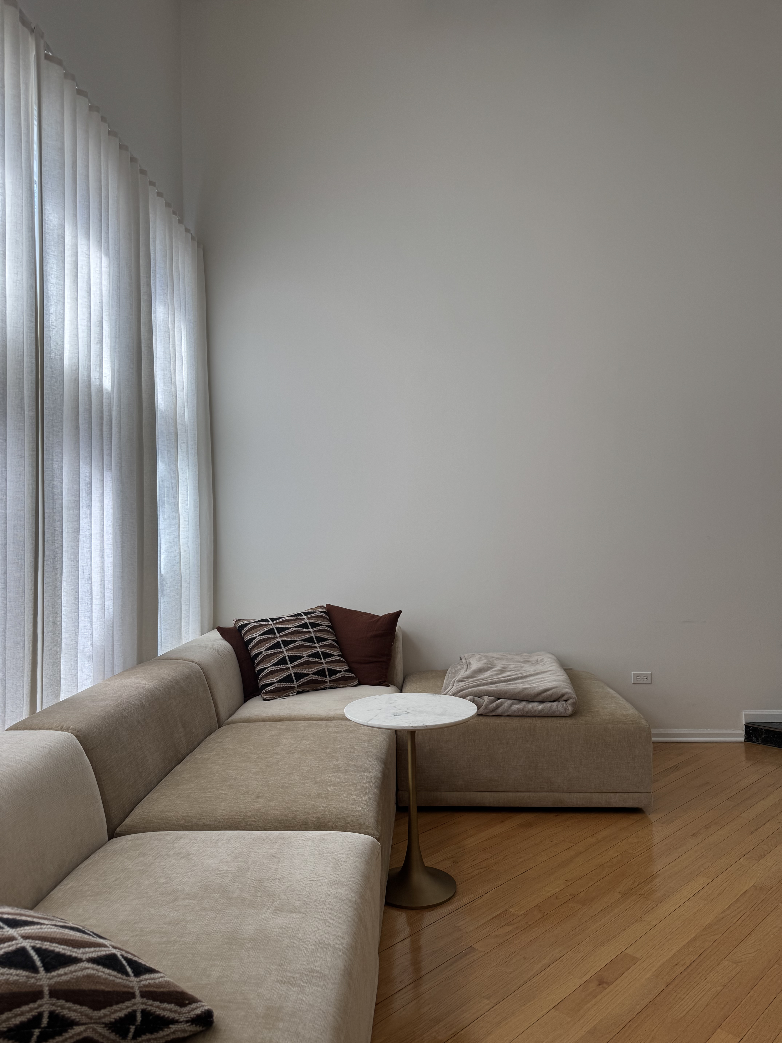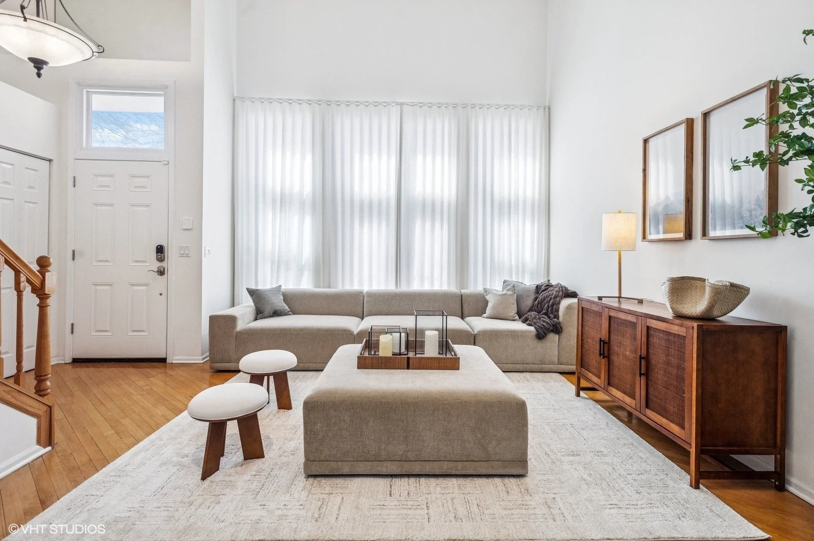 Repurposed Functionality: We detached the ottoman from the sofa and repurposed it as a coffee table, opening up the walking path and improving the room’s flow.
