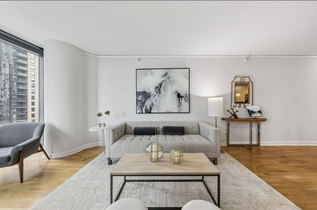 In one of Chicago's premier newer developments, we curated a contemporary interior that mirrors the building's sleek glass and steel architecture. By utilizing low-profile furnishings and a sophisticated, light-reflective palette, we emphasized the panoramic lake views and the home’s ultra-modern finishes.